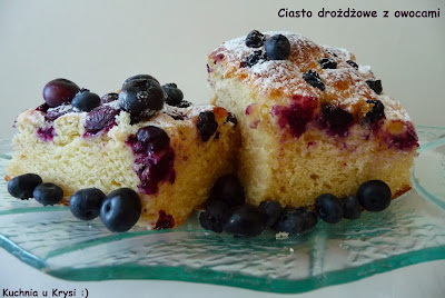 Ciasto kefirowe z jagodami i lukrowaną polewą